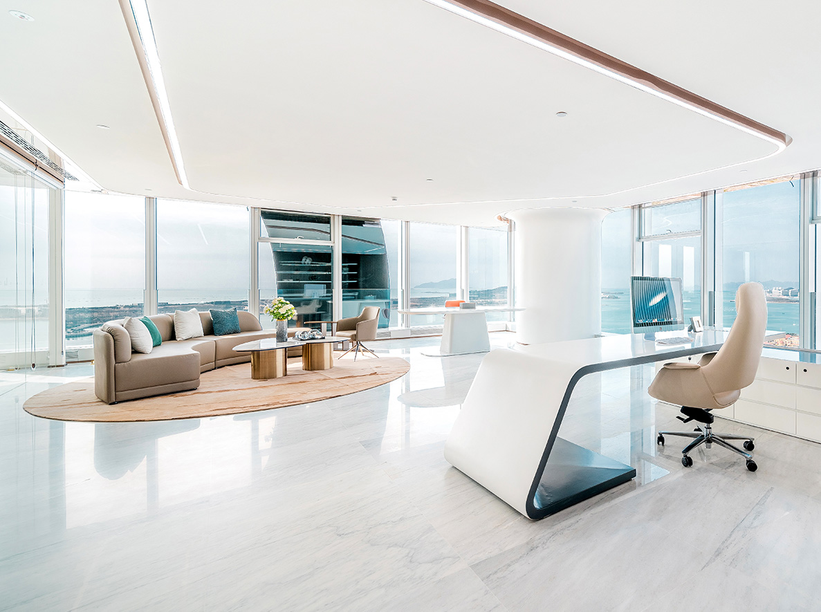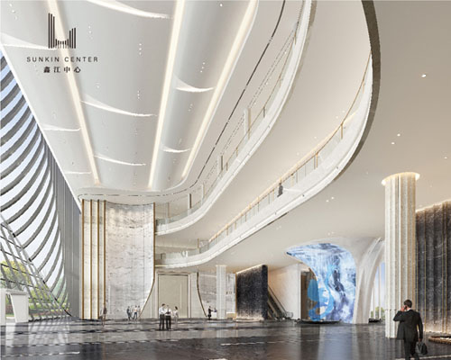 鑫江中心是鑫江集團投資的高端商務綜合體項目。項目擇址國家級經濟新區青島西海岸,據唐島灣金融科創區核芯地段,是一座集辦公、科研等功能于—體的國際超甲級寫字樓。項目總建筑面積約18萬㎡(含商業),緊鄰濱海大道及唐島灣公園,三面海一面城,優享270°一線海景資源,樓體采用鋼骨混凝土框架核心筒結構,U型雙子塔造型,獨創海浪式大堂入口,建面約2500㎡共享大堂,樓間約58.8m無柱大跨度、18.8m挑空空間設計,筑就青島市巔峰商務新封面;項目引入全球前言科技,打造全新智慧樓宇系統,采用新型VAV中央空調系統,運行體量約8萬㎡,是目前青島在建單體運行體量最大的商務項目,更加節能高效環保。