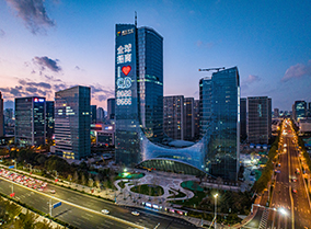 項目A座形象高度約165m,單層面積約2200㎡,B座形象高度約99m,單層面積約1600㎡,全自持統一運營,目前建筑主體及園林景觀已竣工。